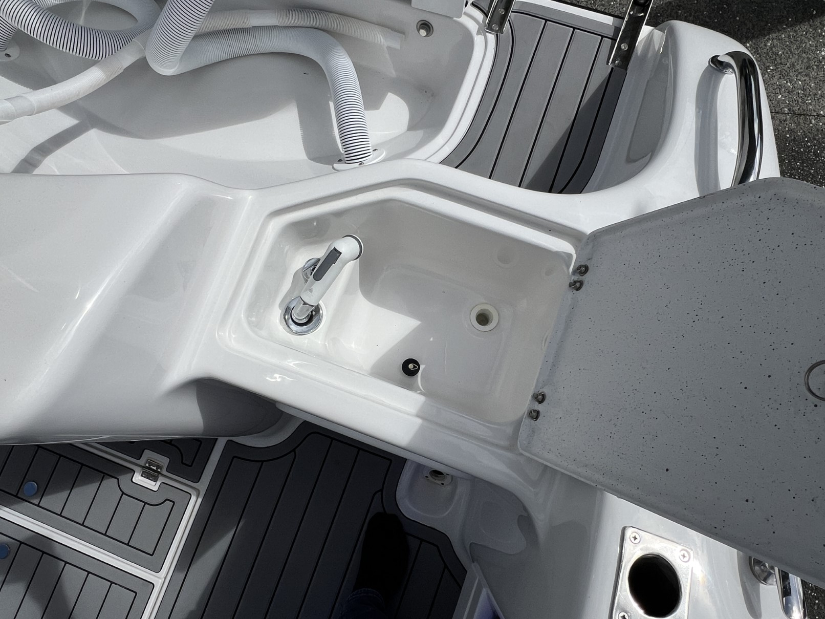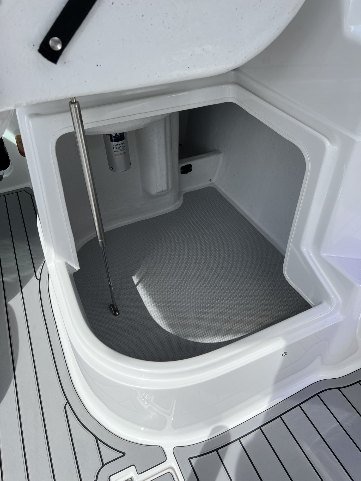 Non-skid matting under cockpit seats Plumbed live bait tank